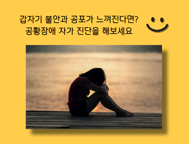 공황장애는 갑작스런 불안감과 공포를 느끼는 질환힙니다. 자가 진단을 통하여 자신의 증상을 파악해보고 전문가의 상담을 받는 것이 좋습니다. 충분한 치료와 관리로 좋아질 수 있으며 다시 정상적인 생활로 돌아올 수 있습니다.
