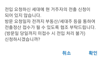 새로 이사가는 분은 이전 세입자의 도시가스 전출처리가 잘되었는지 집주인에게 꼭 확인을 해야합니다. 이유는 전출정산 접수가 안되면 도시가스 전입처리가 불가능하기 때문입니다.