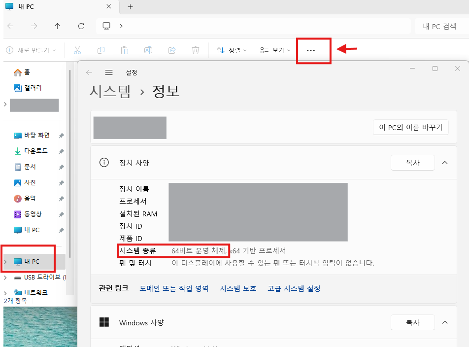 ③윈도우 사양 및 시스템 종류에서 운영체제 확인하기