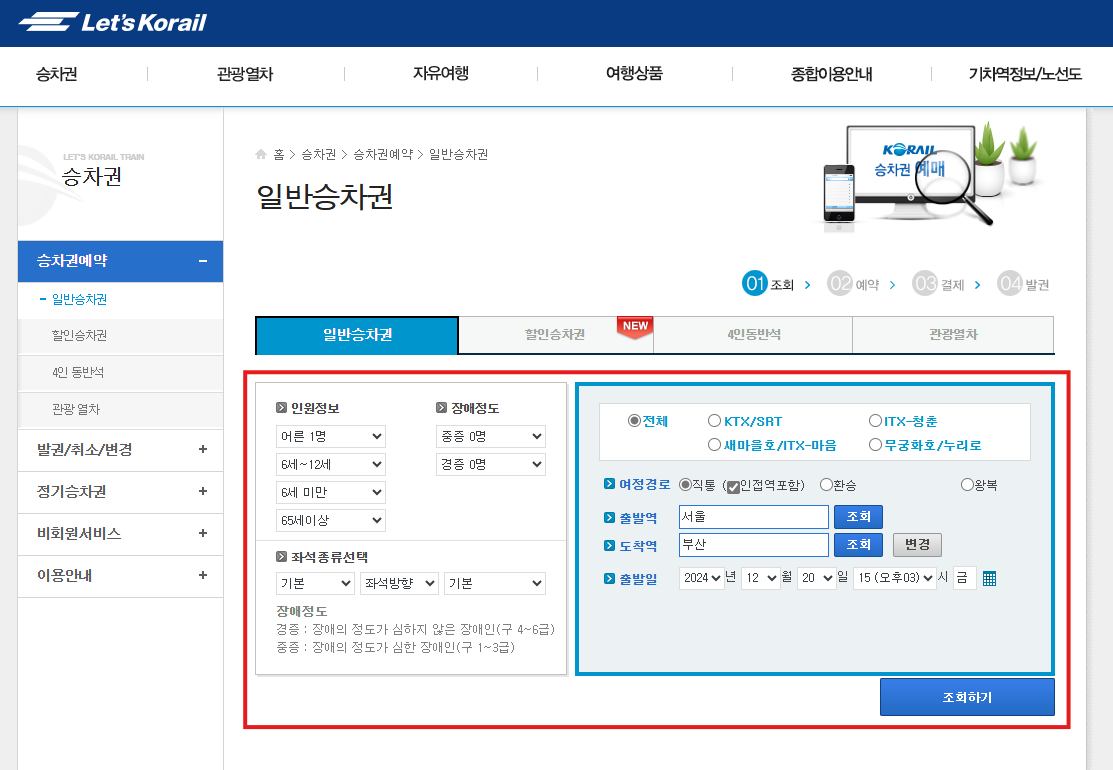 ①기차표 매진시 잔여석 확인