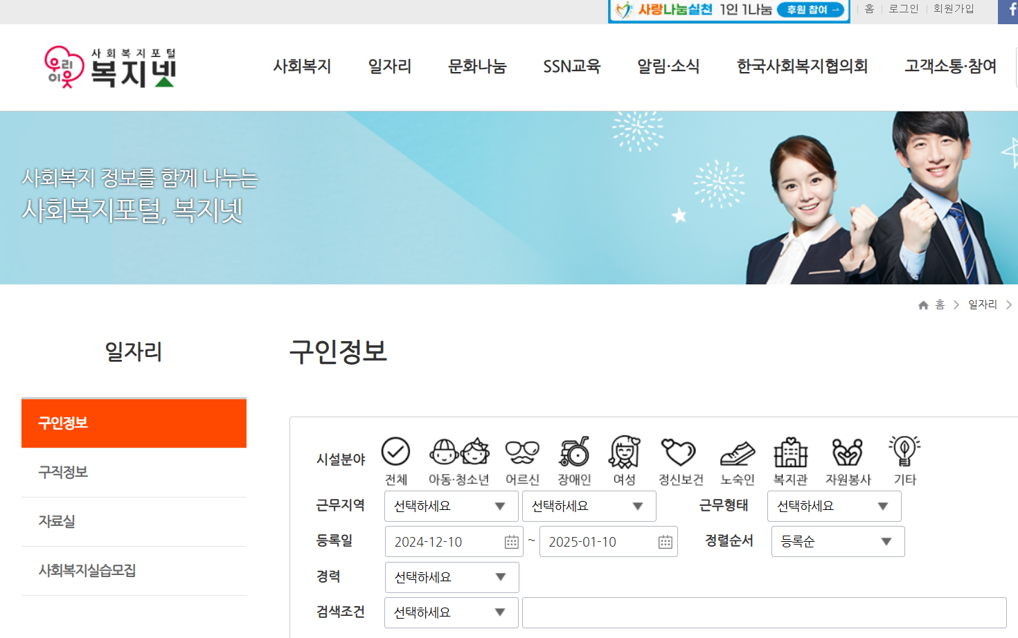 -현장 중심의 정보: 직접 복지 시설에서 필요한 인력을 모집하는 공고가 다수.