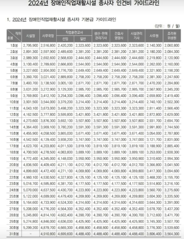 직업재활교사 1호봉은 232만원입니다(2024년기준). 매년 호봉수가 올라가기때문에 장기근속을 하게 될경우 안정적인 급여를 받을 수 있습니다.